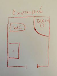 Enkel skiss av det nya badrum och bilder på nuvarande badrummet. Kan skicka eventuellt till info@vasilbygg.se